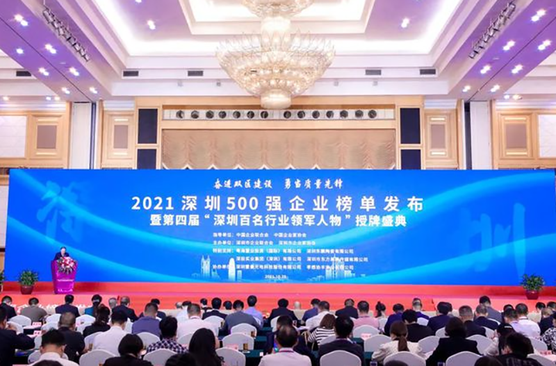 10月29日,“奮進雙區(qū)建設 勇當質量先鋒”2021深圳500強企業(yè)榜單發(fā)布暨第四屆“深圳百名行業(yè)領軍人物”授牌盛典在深圳五洲賓館舉辦。