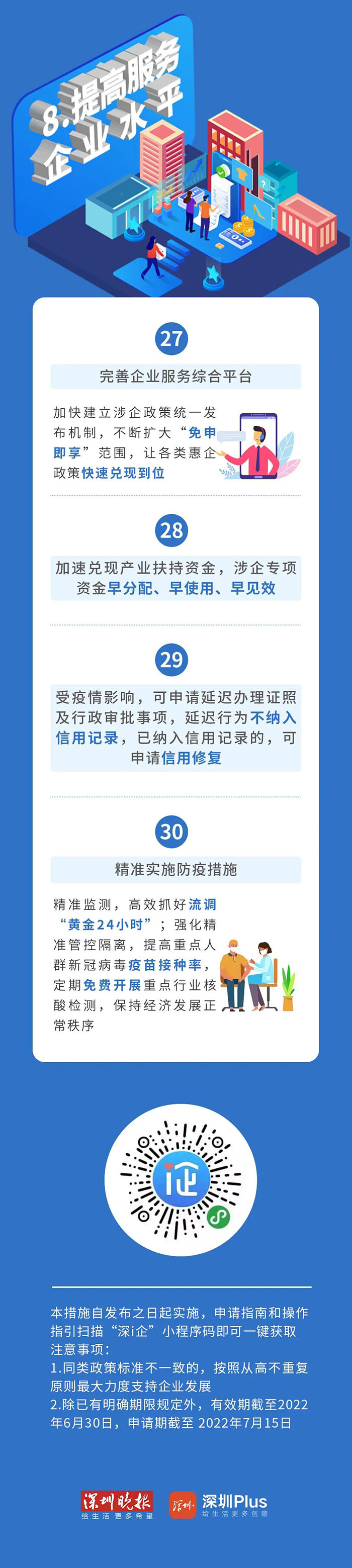 本政策由龍華區(qū)發(fā)展和改革局會同各牽頭單位負責解釋。對國家、省、市出臺的相關支持政策,從其要求全面落實;同類政策區(qū)內(nèi)標準不一致的,按照從高不重復原則最大力度支持企業(yè)發(fā)展。本政策自發(fā)布之日起實施,除第九條防疫科技攻關支持措施有效期至2022年12月31日外,其余條款有效期至2022年8月31日,政策申請指南和操作指引由各牽頭單位另行加快制定并組織實施。