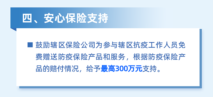 實施防疫保險補貼。對2022年3月1日至5月31日期間,購買防疫保險產(chǎn)品和服務的企業(yè),按照實付保費的50%予以支持,單家企業(yè)最高5萬元。(牽頭單位:區(qū)金融工作局)