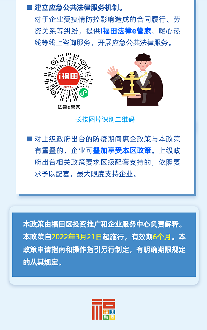 開展專項法律援助。建立應急公共法律服務機制,對于企業(yè)受疫情防控影響造成的合同履行、勞資關系等糾紛,設立專線提供應急公共法律咨詢服務。(牽頭單位:區(qū)司法局)
