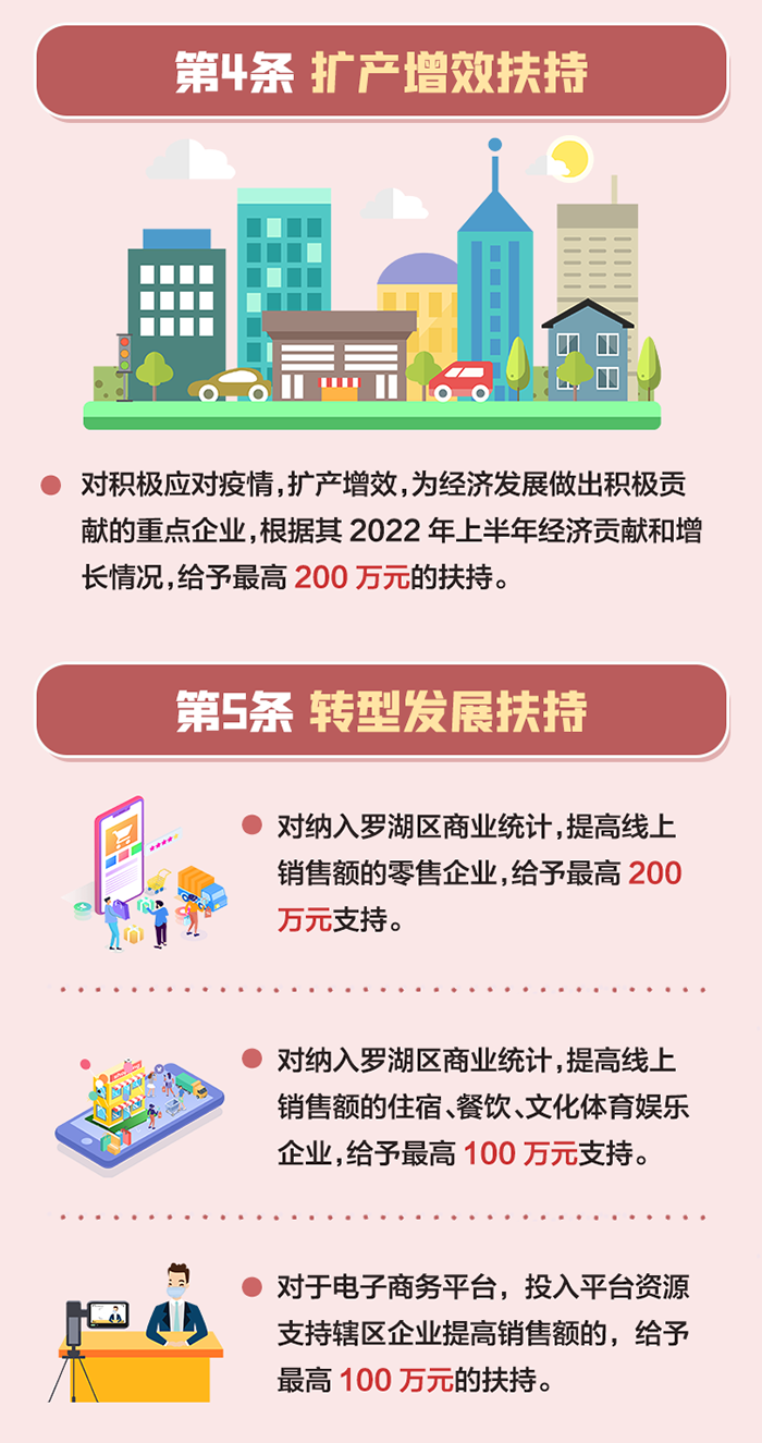 助力重點行業(yè)應對疫情沖擊。對主動配合疫情防控并在條件具備時開展經(jīng)營的限額以上住宿(隔離酒店除外)、餐飲、汽車銷售企業(yè),以及納統(tǒng)景區(qū)、旅行社、電影院、體育、演藝娛樂場所,給予2022年3月1日至5月31日期間實際支付租金總額20%的補貼,最高20萬元(承租創(chuàng)新型產(chǎn)業(yè)用房、已享受第一條免租減租政策的除外)。(牽頭單位:區(qū)工業(yè)和信息化局、文化廣電旅游體育局)